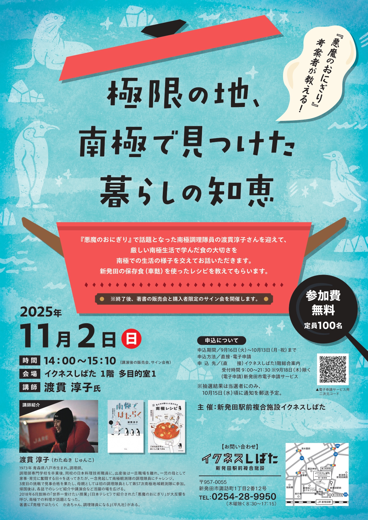 コンビニ発売で話題となったあの悪魔のおにぎりの考案者、第57次南極地域観測隊調理隊員・渡貫淳子氏の講演会を開催します。お申し込みのうえ、ぜひご参加下さい。
