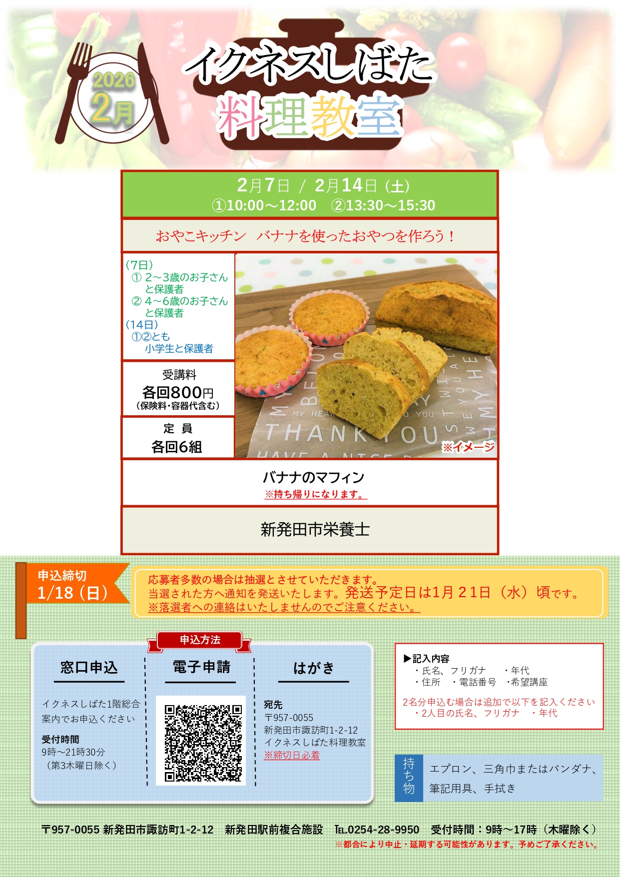 13時30分~15時30分(持ち帰り、後片づけの時間を含む)