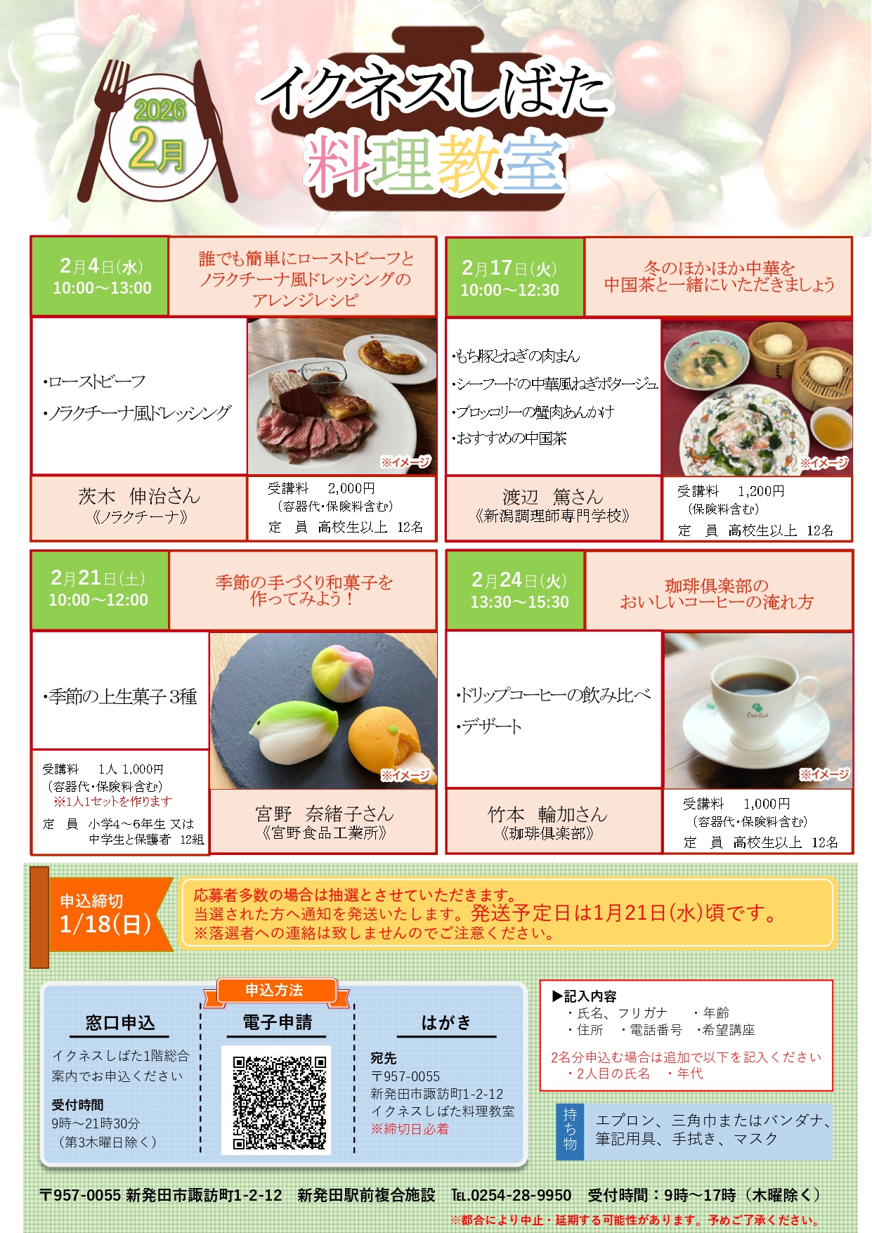 都合により、講座を中止・延期する場合がございます。予めご了承願います。